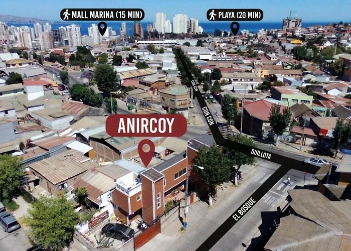 The 6-room Anyrcoy Apartment Vina del Mar is located only 1.3 km from Sausalito Stadium and approximately a 25-minute walk from the historic Vergara Pier. This apartment is situated about 25 minutes on foot from Viña del Mar Bus Terminal train station and within a few blocks of Santa Ines - Cementerio bus station.